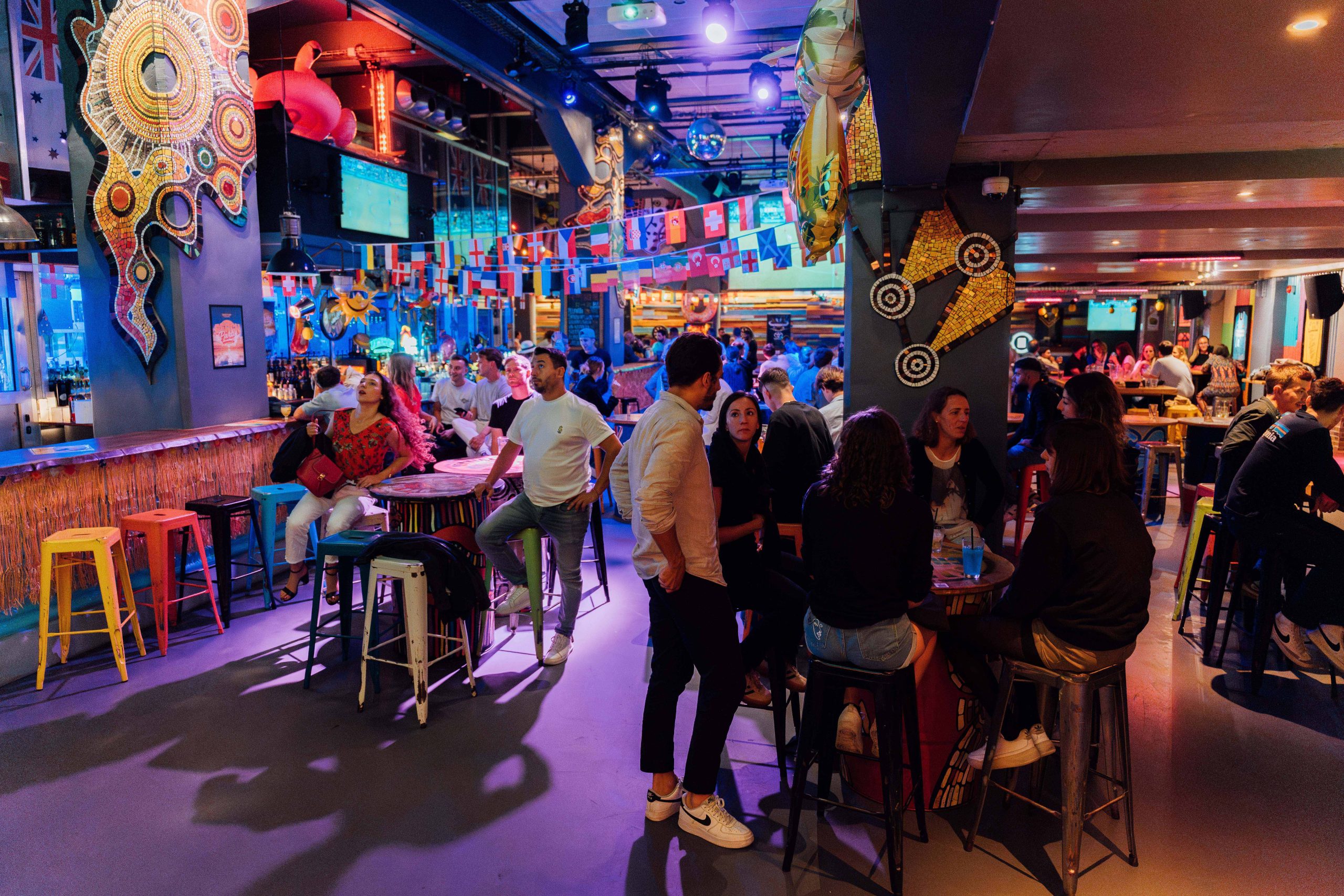 Australian pub, music, food, sports on giant screens, DJ nights…
